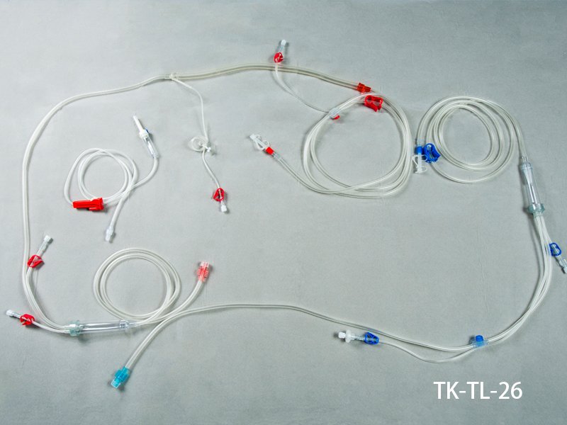 This extracorporeal blood circuits for haemodialysers is specially designed as a tool of transfusion blood for blood circulation. Its basic use is venous blood be drawn out the body by special device and return to organ by pump after oxygenation. And it is suitable in noncardiac surgery areas such as neurosurgery, organ transplant families and oncology etc.
